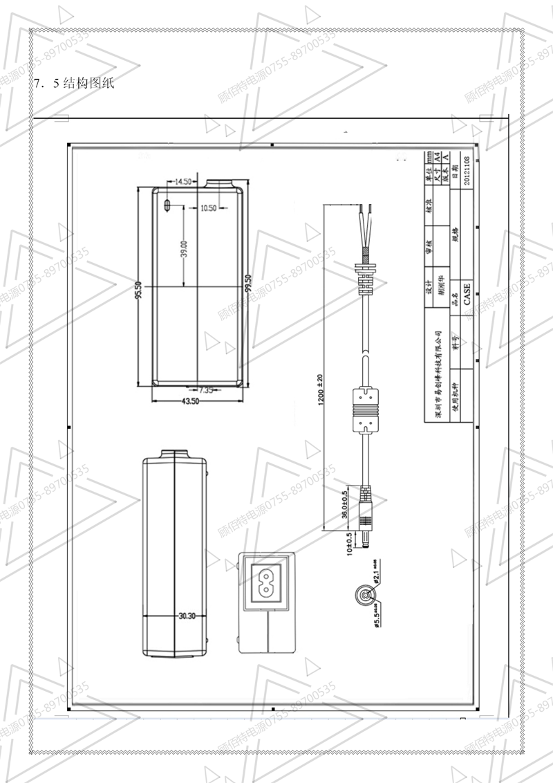 19V3.5A電源適配器規格書